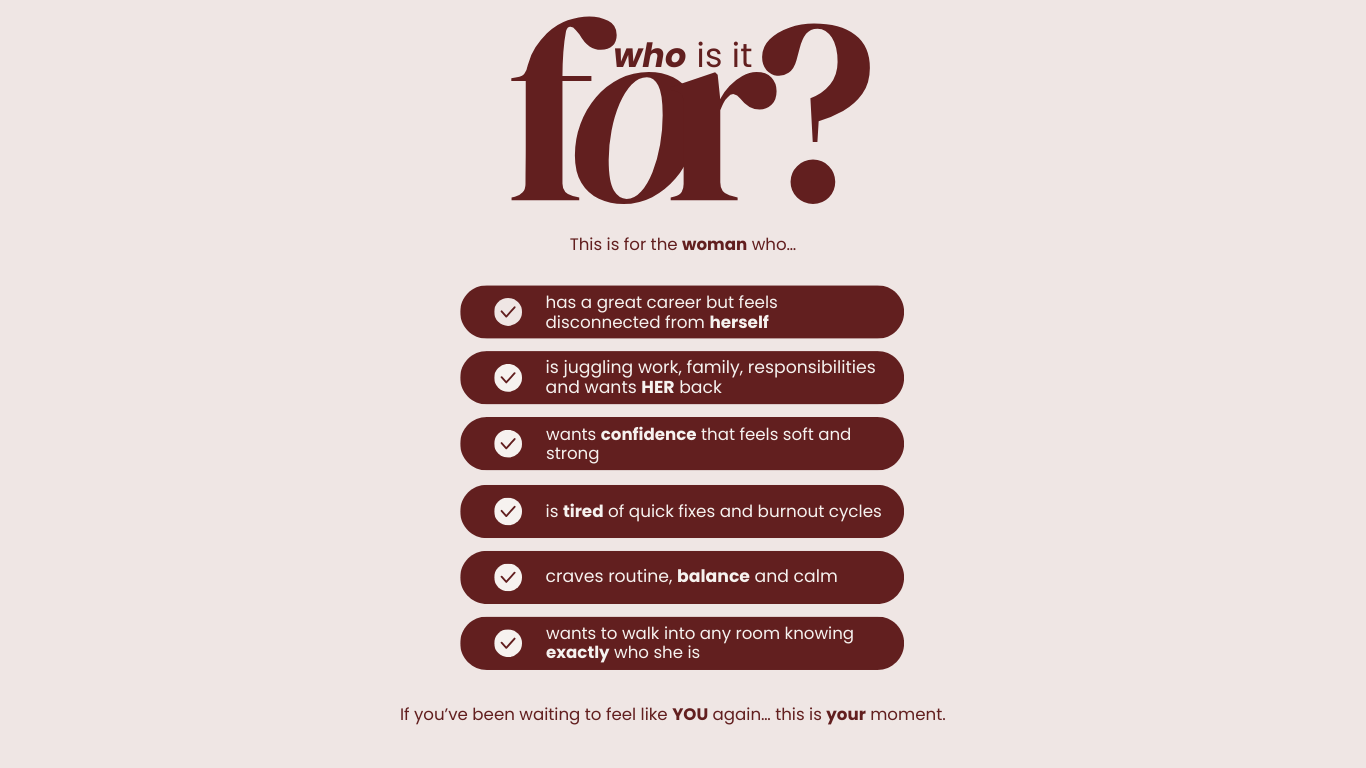 Do you want to feel calm, confident, energised and proud of the woman you’re becoming?